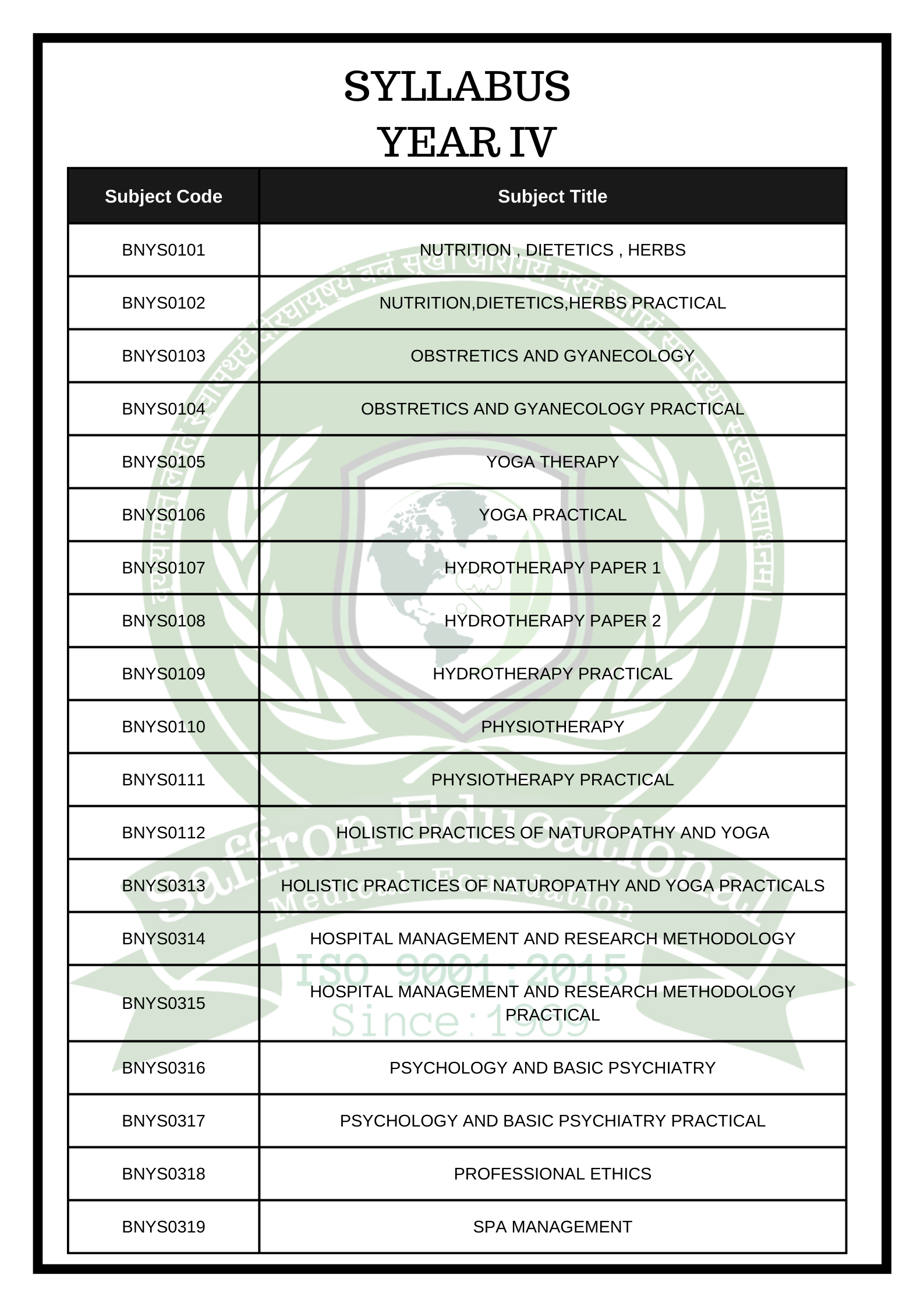 Bachelor of Naturopathy & Yoga Science (B.N.Y.S.)